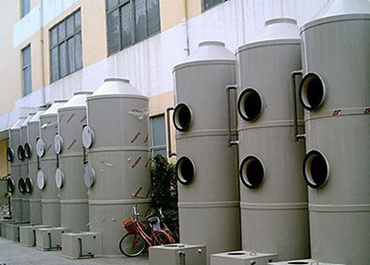 洗滌塔系統之風機組將收集到的廢氣吸入洗滌塔內,流經填充層段(氣/液接觸反應之介質),讓廢氣與填充物表面流動的藥液(洗滌液)充分接觸,以吸附廢氣中所含的酸性或堿性污物。洗滌后,廢液收集至集水槽中,再排放至廢水系統處理。